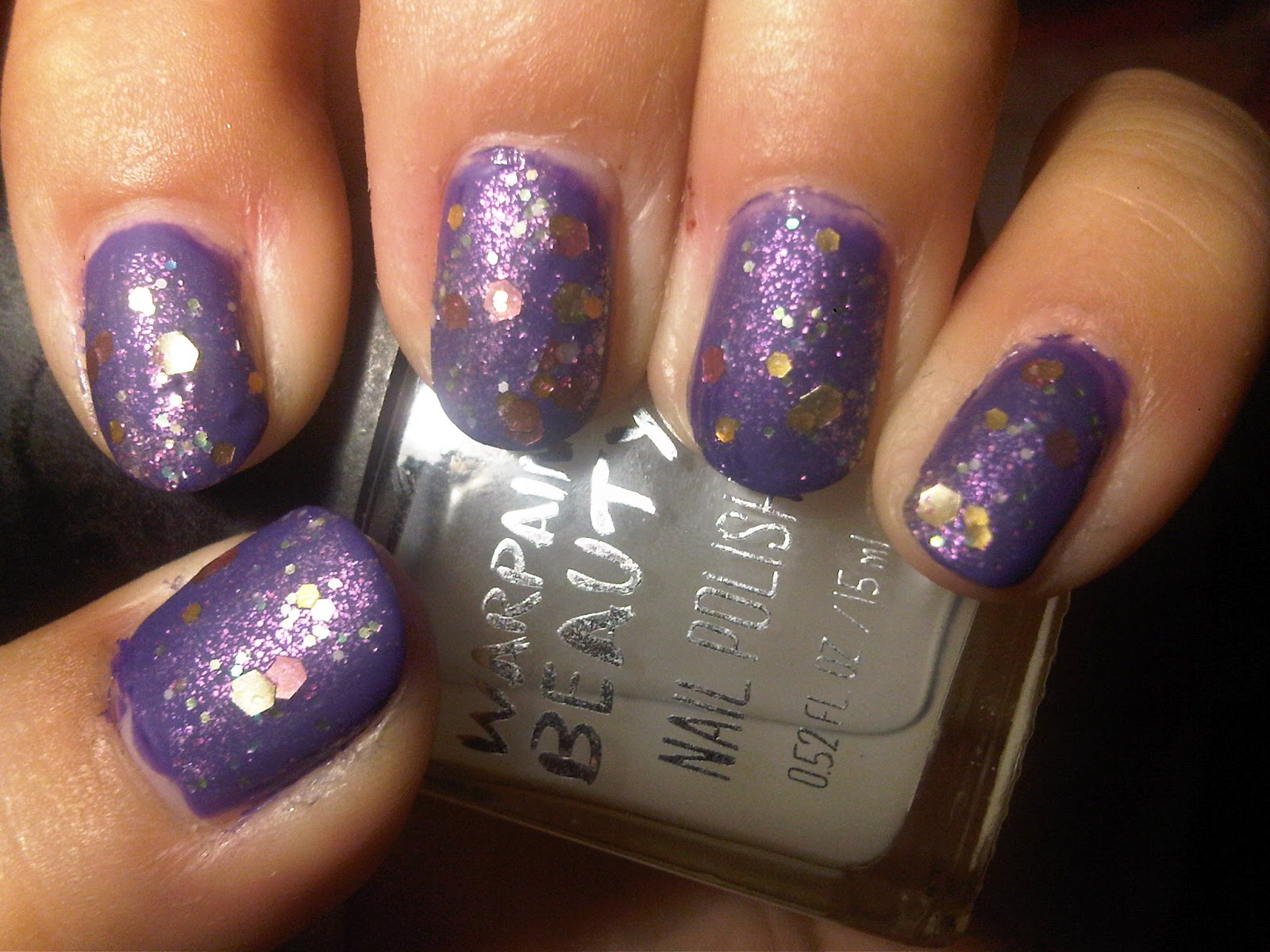 So the one thing that's getting me, it SEEMS a little thick. I don't think it is though. It didn't take any dabbing, just a couple strokes. The big yellow hexes though, the edges are a little bit taco, though not much and it's not bothering me. However, for now I'm going to say that this is probably my least favourite Rainbow Honey that I've tried only because I'm not a huge bling-girl. ON THAT NOTE: SHINY.